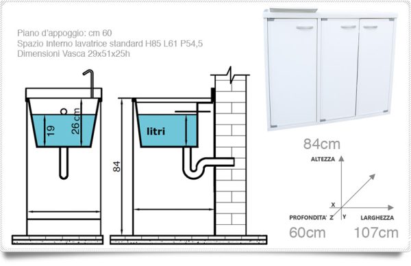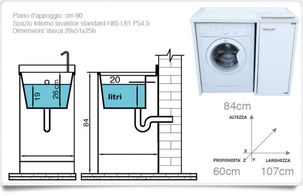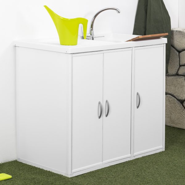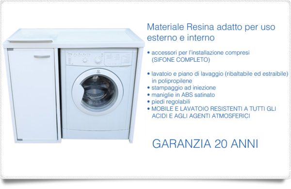 Tapa de lavadora 107x89hx60prof. Con fregadero disponible tanto a la izquierda como a la derecha, puerta en resina, tanto para interior como para exterior.
