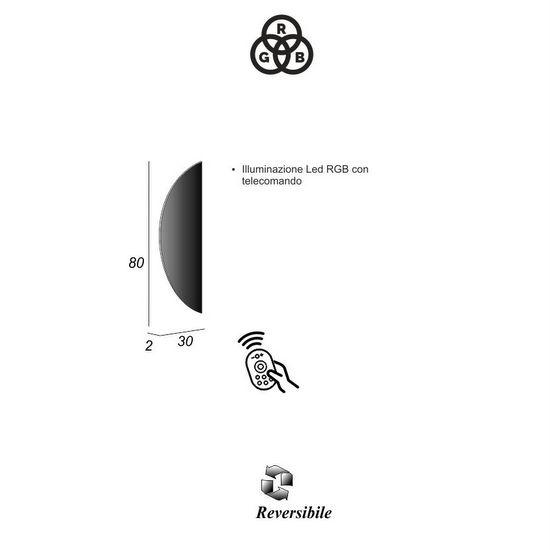 En el menú desplegable, es posible añadir un espejo de 30×80 cm, con efecto bronceado y equipado con retroiluminación LED rgb, que ofrece una variación de colores (que van del rojo al verde y al azul); los distintos tonos de color se pueden configurar gracias al mando a distancia suministrado.
