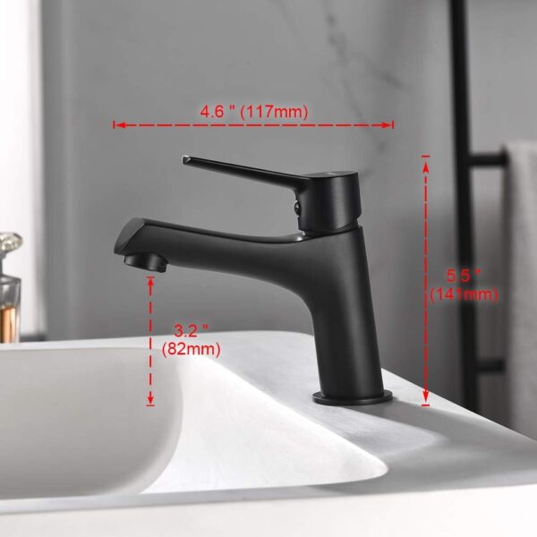 Grifo de lavabo moderno de cuello bajo de latón con acabado negro mate.