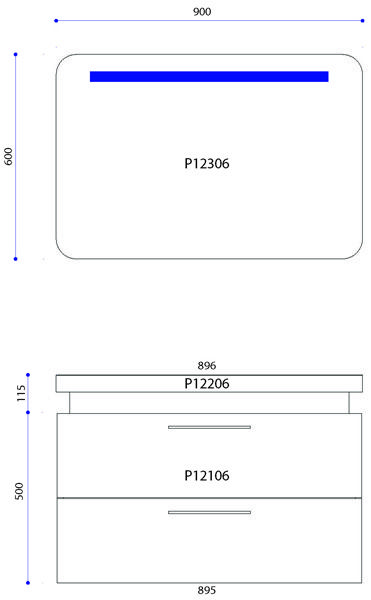 Mueble de lavabo n ° 1 90x50x50H cm formado por dos cajones