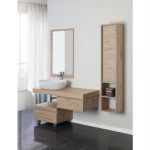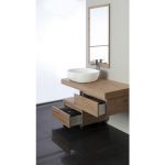 El estante no está perforado, por lo que el fregadero se puede colocar tanto a la izquierda como a la derecha, así como la unidad del tocador