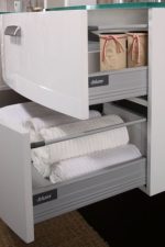 El mueble está suspendido, pero también es posible instalar pies cromados.