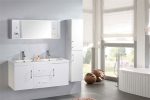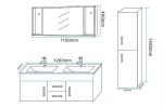 Equipado con un espejo de 110×40 cm con un estante en MDF lacado blanco, le permitirá permanecer frente al espejo incluso en dos personas al mismo tiempo que dos lavabos de cerámica blanca de 120 cm están colocados en la parte superior de 120 cm.