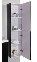 La estructura, robusta y duradera, está hecha de madera MDF, lacada en negro, y tiene 2 puertas y 2 cajones que le permitirán tener todo lo que necesita para su baño.