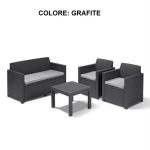 Conjunto de salón de exterior disponible en dos variantes: grafito o marrón