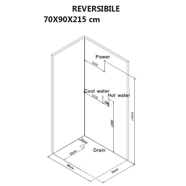 CABINA DE HIDROMASAJE REVERSIBLE 70x90cm CB097