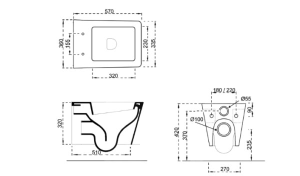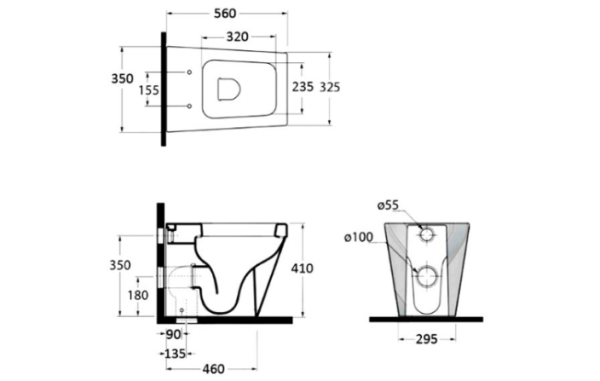 - Inodoro colgante: dimensiones 36x57xH32 cm