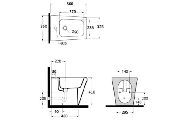 - Bidé suspendido: dimensiones 36x57xH32 cm.
