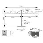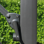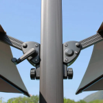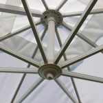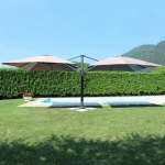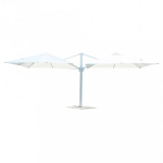 Parasol con la combinación especial de un solo mástil para dos lonas, con la posibilidad de mantener ambas abiertas o abrir sólo una, según sus necesidades.