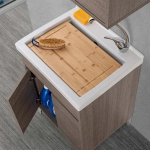 Utilizando el menú desplegable, es posible añadir un mueble alto a juego de 60xP30xH72 cm (con dos puertas PUSH&PULL y un estante interior)