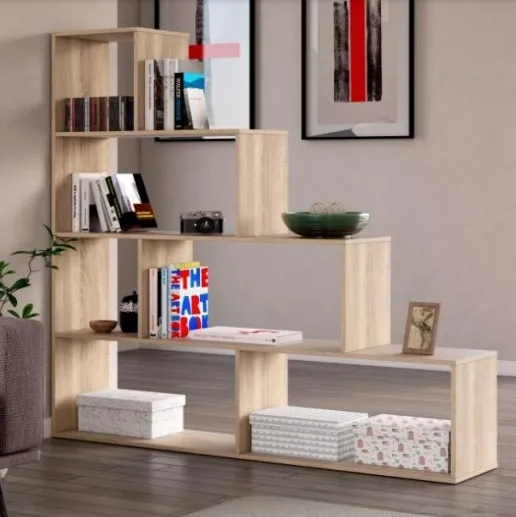 145x29x145 cm bibliothèque blanche ou chêne avec étagères ouvertes BM091