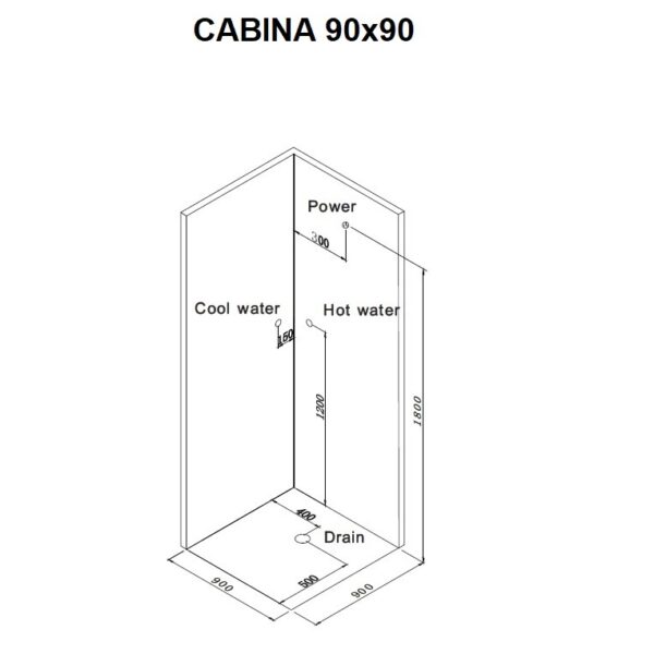 Cabine d’hydromassage semi-circulaire 90 x 90 cm