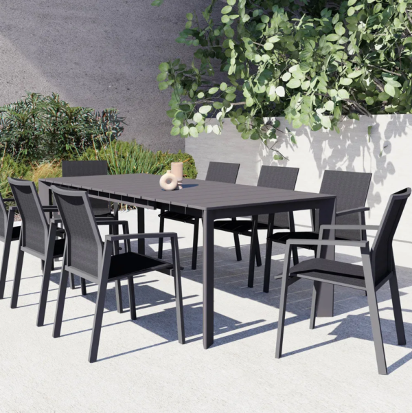 Table rectangulaire adaptée aux jardins et aux environnements extérieurs