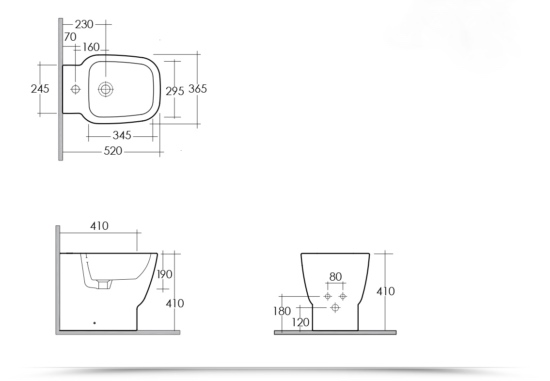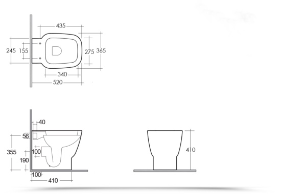 Dimensions des sanitaires : 52 x 36,5 x H 41 cm