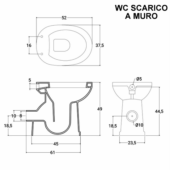 WC 37,5 x 52 x H 49 cm.