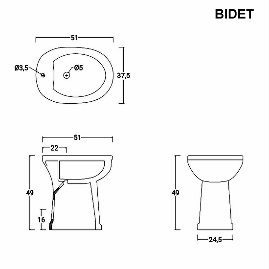 Bidet 37,5 x 51 x H 49 cm.