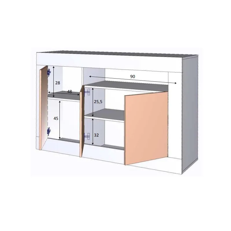 Buffet 144x42xH87 cm avec 3 portes et une étagère ouverte BM077