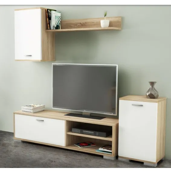 BM087′ COMPOSITION DE MEUBLE TV EN CHÊNE ET BLANC