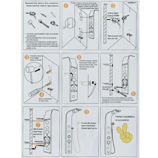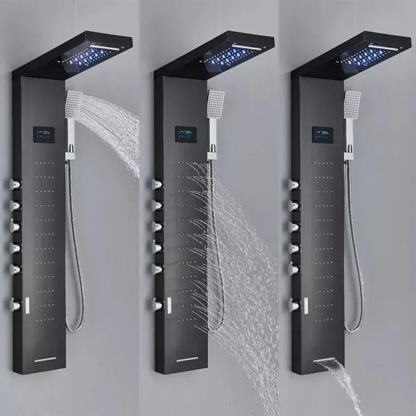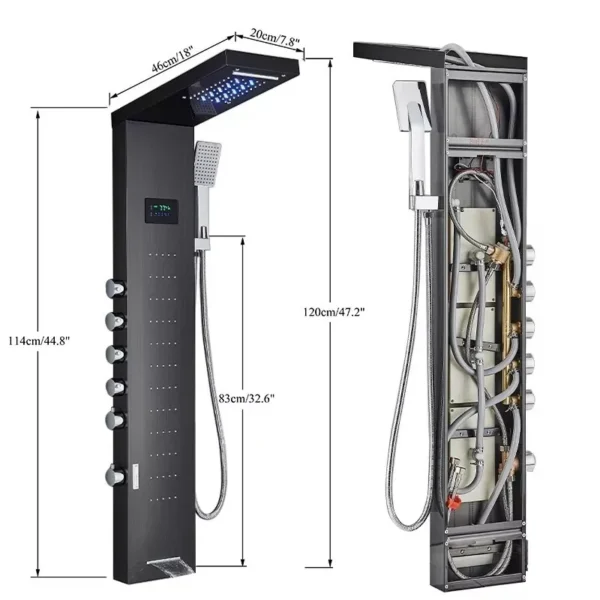 Colonne de douche en acier inoxydable, disponible en deux couleurs : noir ou argent (sélectionner la couleur dans le menu déroulant)