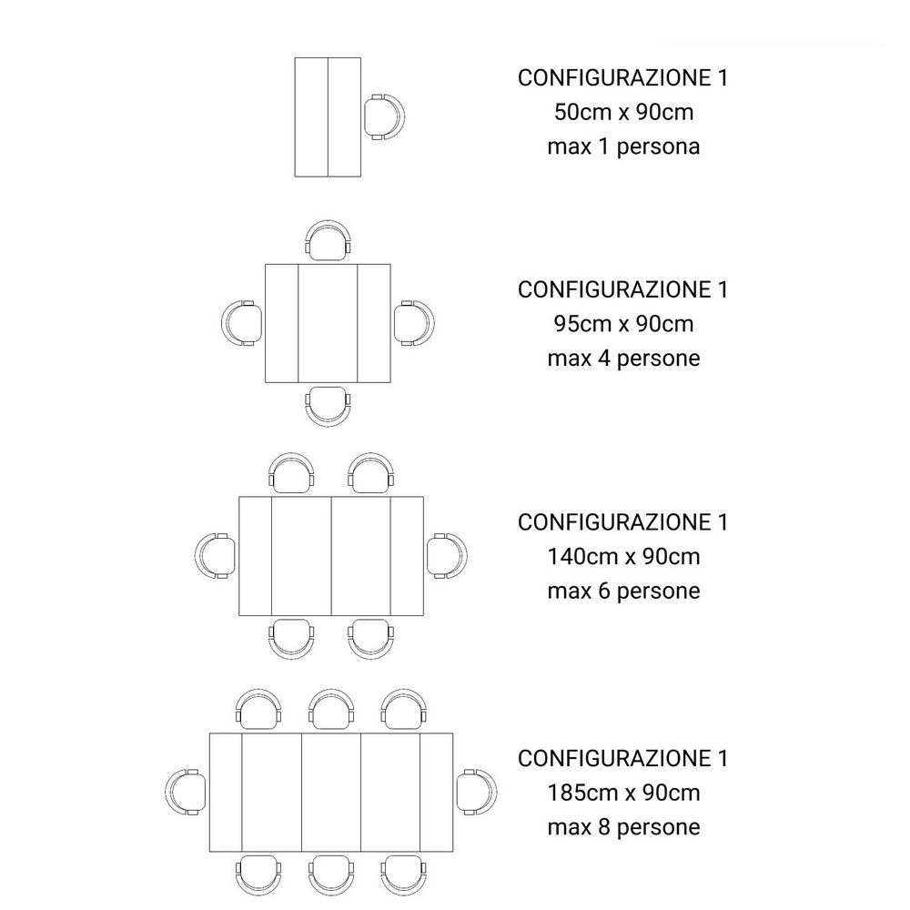 Console 50 x 90 cm pouvant être transformée selon les configurations suivantes :